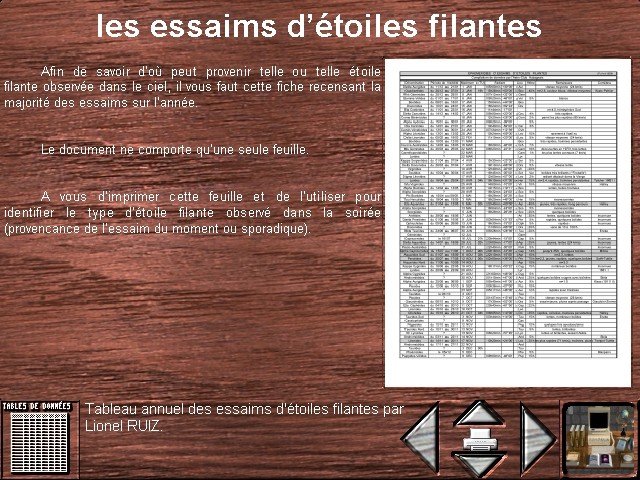 Mais il y a aussi des tableaux de données sur les objets du ciel, les comètes, ...